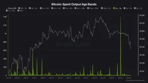Tal como se aprecia en el siguiente gráfico provisto por CryptoQuant, 1.401 BTC acumulados por tenedores de entre 2 y 3 años de antigüedad fueron retirados de sus wallets hacia exchanges el domingo 21 de septiembre.