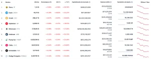 Y las altcoins se llevan la peor parte. El siguiente gráfico, provisto por CoinMarketCap, muestra las 10 criptomonedas y tokens con mayores caídas en la última semana: