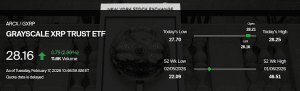 El lanzamiento del Grayscale XRP Trust ETF a finales de 2025 fue un catalizador importante. Este producto ofrece exposición directa al 100% al token de Ripple. Al momento de la publicación, el precio de mercado del GXRP se situaba en 28.16 dólares.