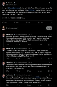 Los reguladores de la SEC publicaron la guía un día después de que el presidente de la SEC, Paul Atkins dijera que el sistema financiero tradicional se está moviendo onchain.