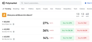 Las estimaciones surgen tras una caída a alrededor de los 60.000 dólares en la primera semana de febrero, antes de que el precio se recuperara. El rebote de bitcoin, que llegó a los 76.000 dólares el 17 de marzo, había reforzado la percepción de que el mercado podría estar retomando impulso, motivando a los usuarios de la plataforma a apostar por escenarios de subida.