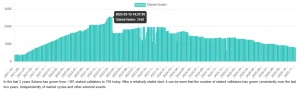 En el gráfico a continuación se puede observar el descenso en la cantidad total de validadores en Solana: